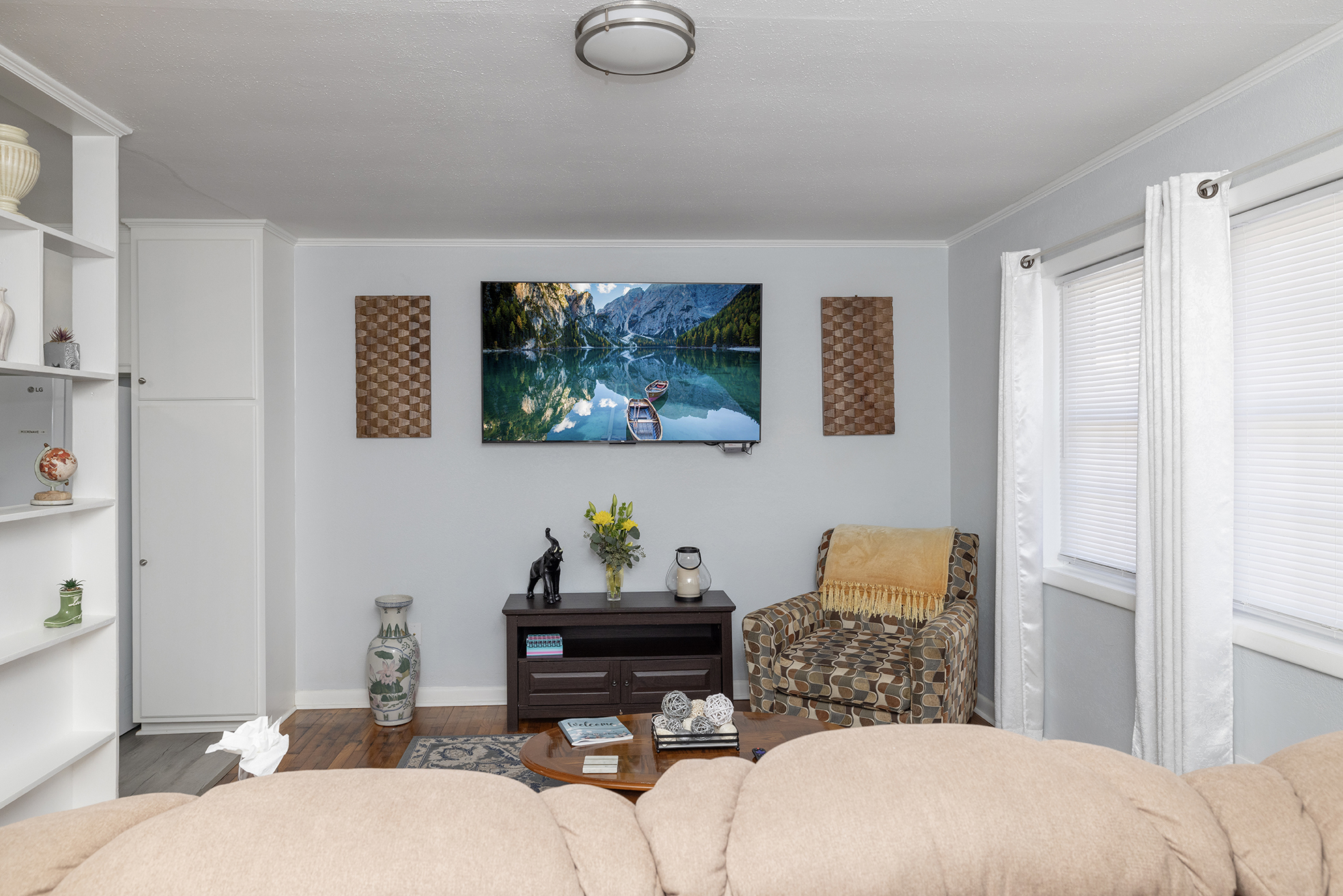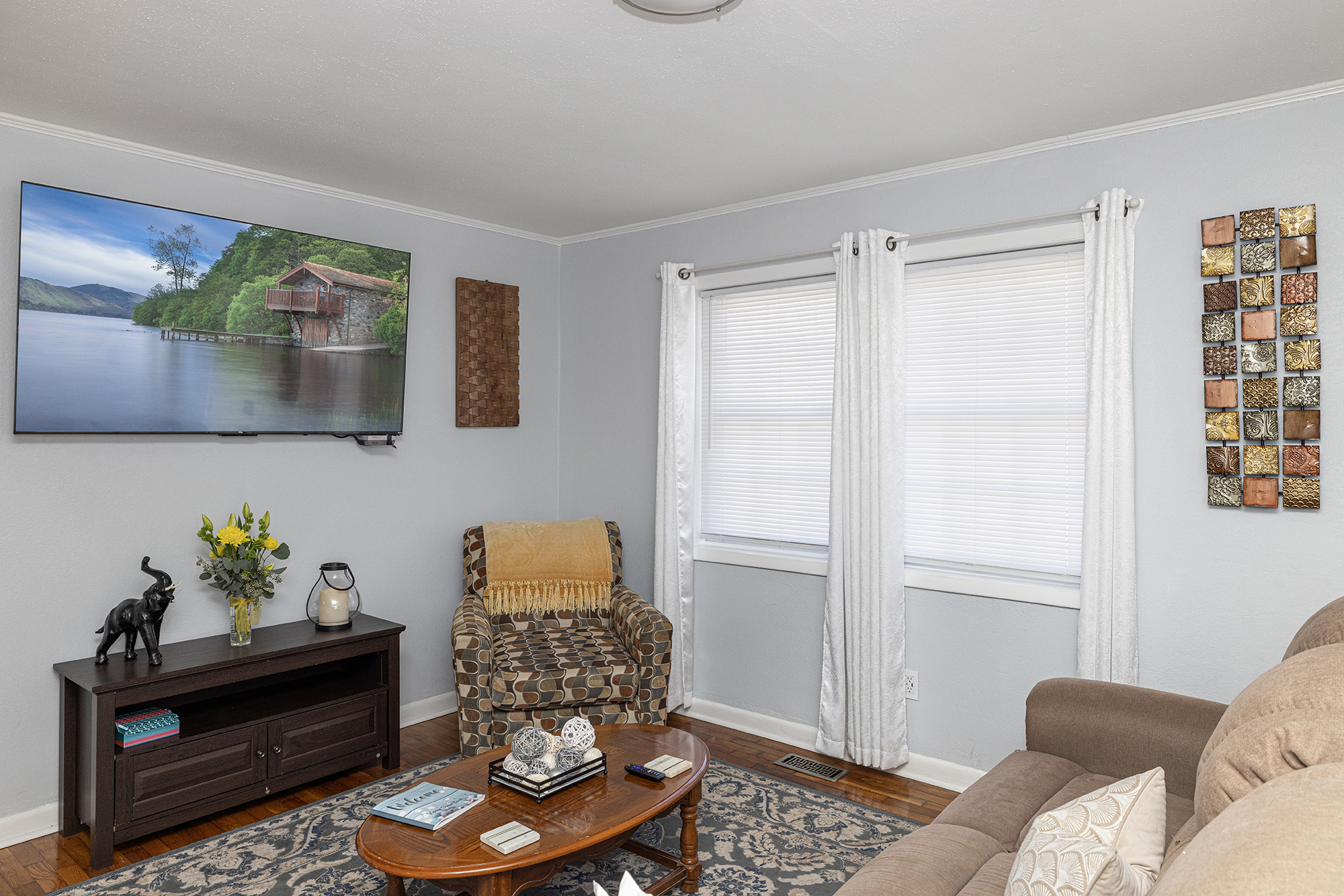 Escape to a beautifully furnished retreat! Step into your private, fully fenced-in backyard & soak your cares away in the glowing hot tub. Relax in the egg chair swing or enjoy the cozy patio sitting area. Lazy Dayz is designed for comfort and relaxation, putting you close to everything Lincolnton has to offer while providing a peaceful space to unwind. Inside, the living room invites you to relax on a large reclining couch and enjoy a large 65in TV with a classic Nintendo gaming system.