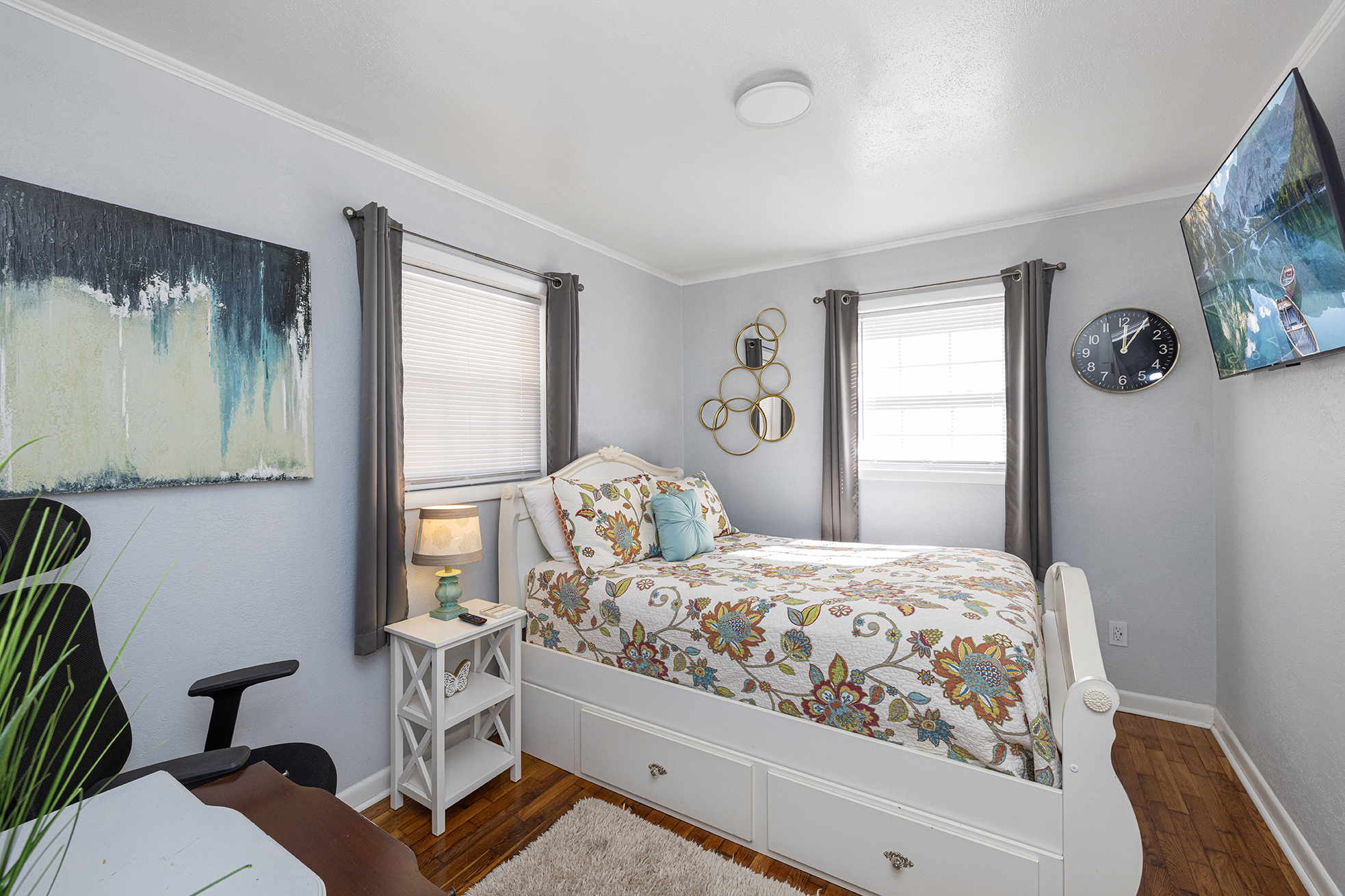 - You will have access to the entire home, the tall private fenced-in backyard, the patio with its hot tub, swinging chair with sitting area as well as the covered front porch sitting area. - Self check-in on your schedule is simple and secure with a smart lock. - Ample, free on-site parking is available and can accommodate large vehicles, trailers, or groups traveling with multiple cars.